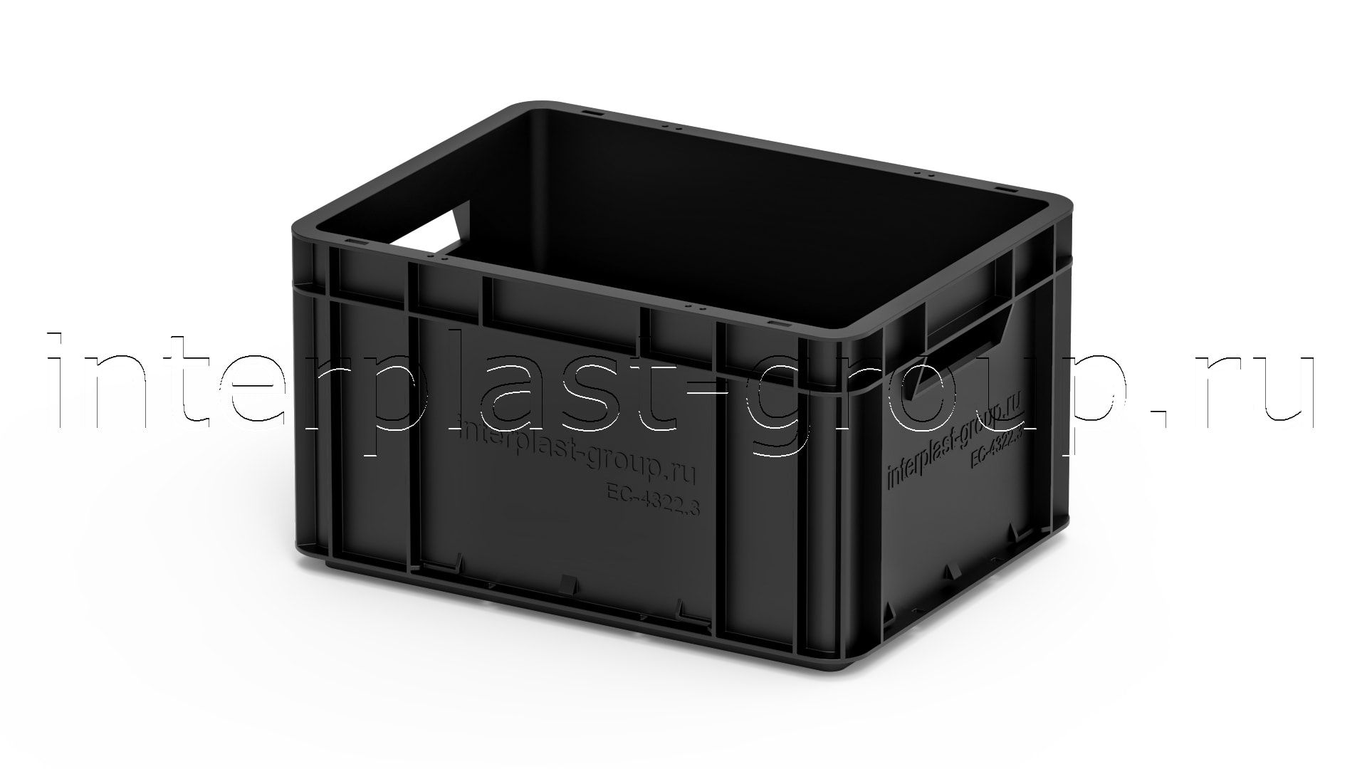 Евроконтейнер открытые ручки/усиленное дно (черный), 400x300x220 мм