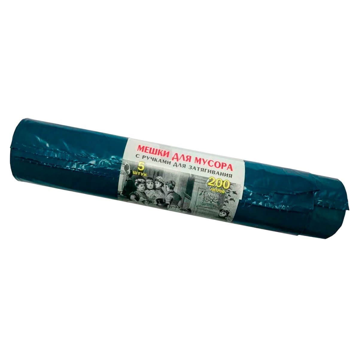 Мешки для мусора 200 л, с завязками, синие, в рулоне 5 шт., ПВД, 45 мкм, 1100х850 мм, Концепция Быта Vitalux, 604934