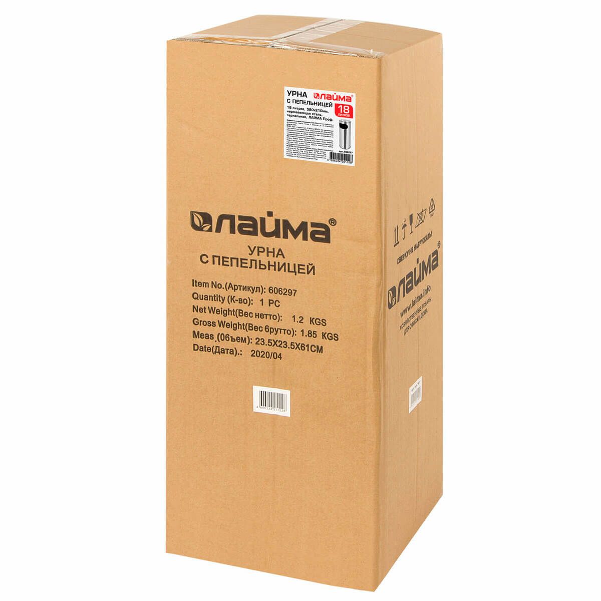 Урна с пепельницей 18 литров, нержавеющая сталь, зеркальная, LAIMA PROFESSIONAL в Кургане