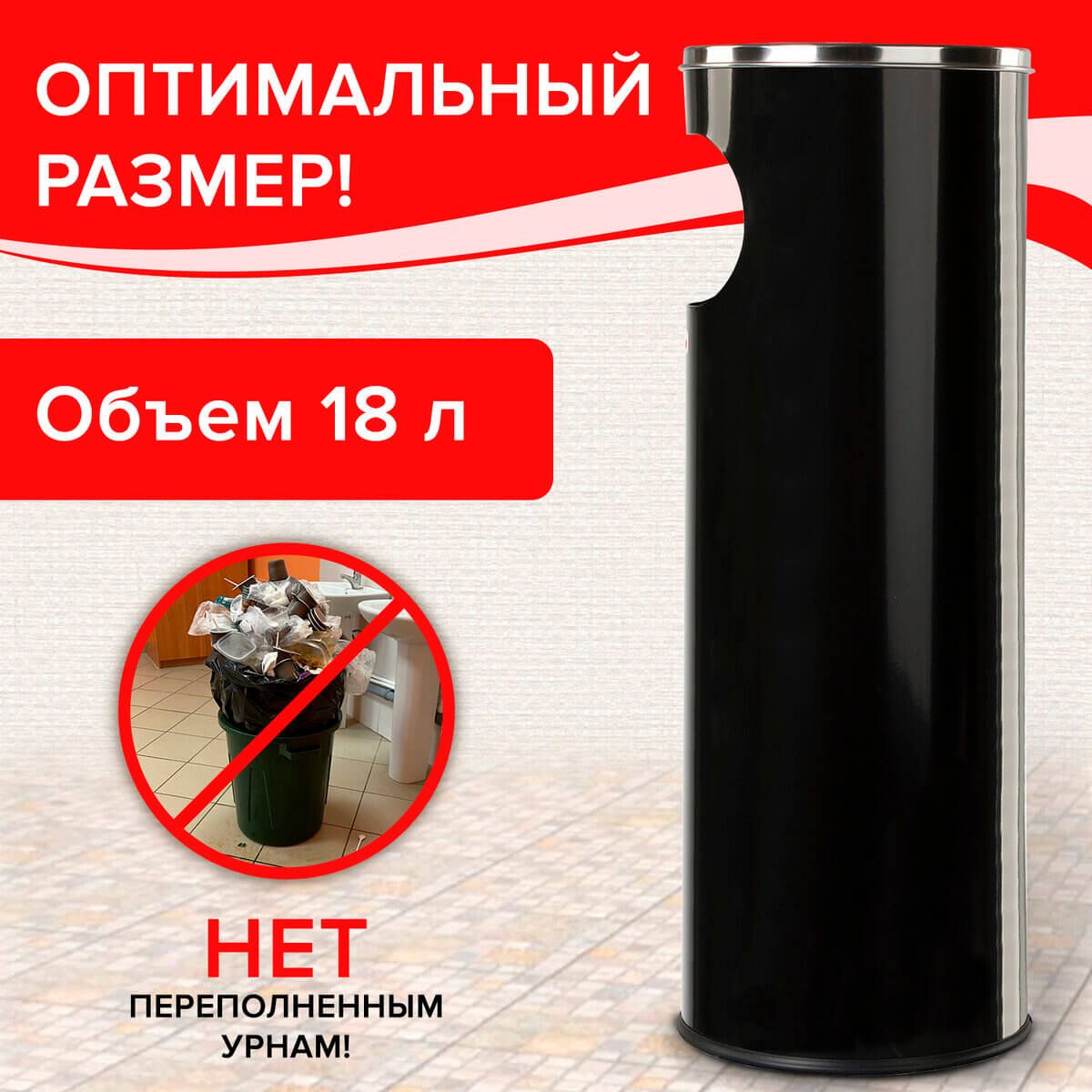 Урна с пепельницей 18 литров, нержавеющая сталь, черная, LAIMA PROFESSIONAL в Кургане